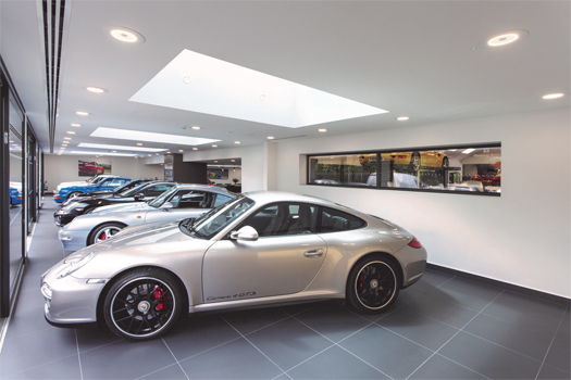 Illuma were asked to provide a series of lighting designs for Paragon Porsche GB with the aim to increase lux levels in the main area of the showroom - particularly over the cars - to give them that extra sparkle and make the area feel brighter and more glamourous.